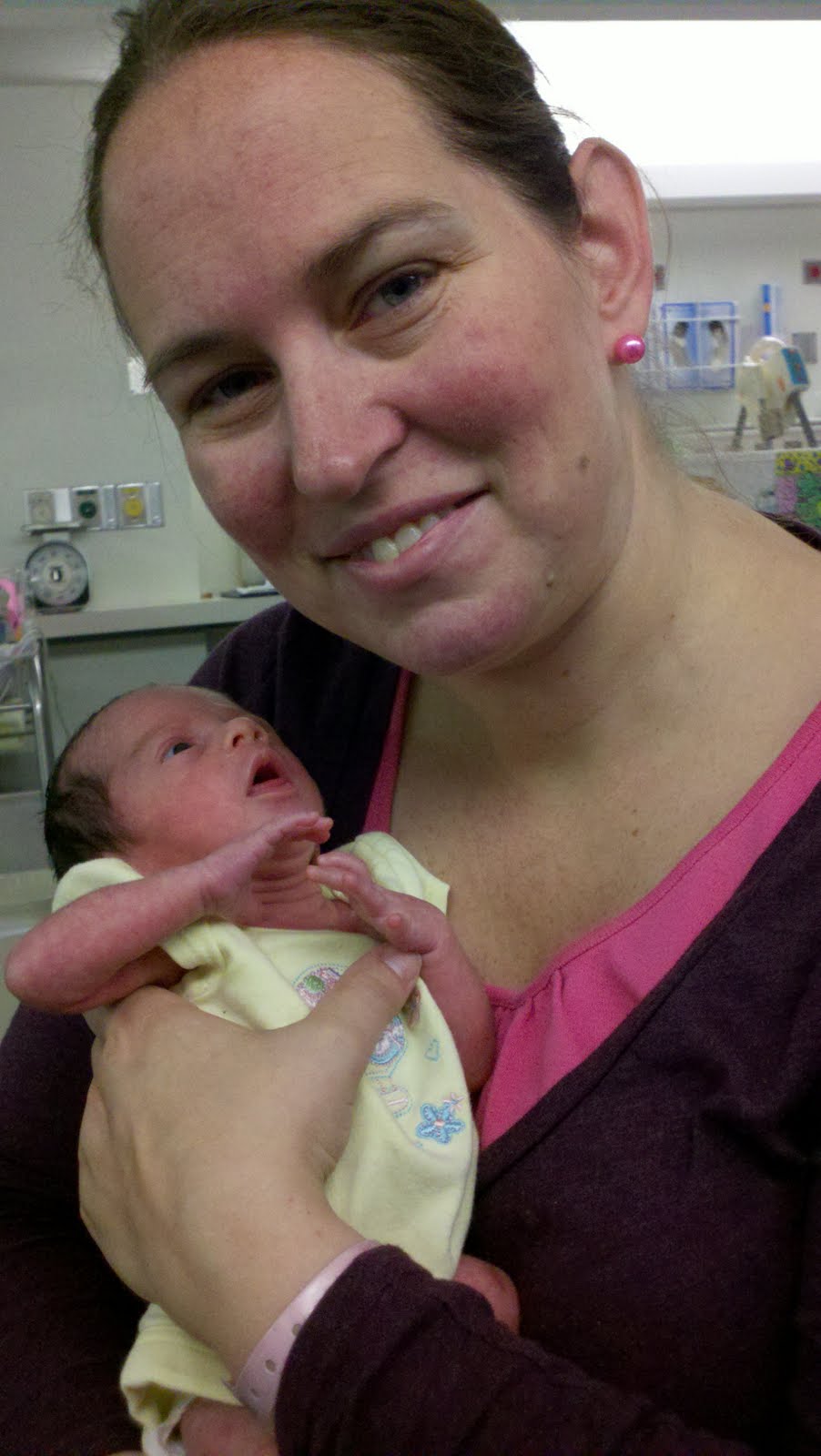 She is so adorable. She weighed in at 3lbs 7oz this evening and ate from her first bottle (@ 31ml) . She progressing amazingly well. The nurse said that she will have two bottles a day (1 every 12 hour shift). Thanks again for all of your prayers and love for our little Wiggy. Love you all.